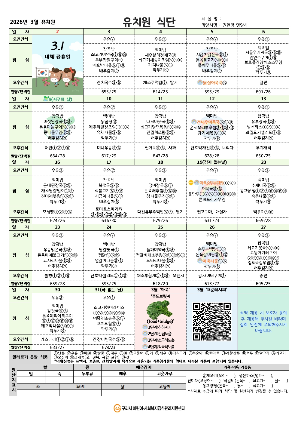 건강한 급식, 밝은 미래! 구리시 어린이·사회복지급식관리지원센터가 함께합니다.