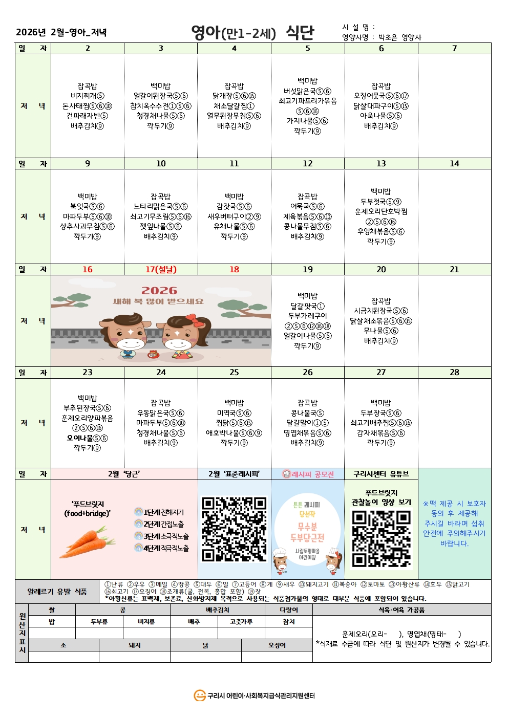 건강한 급식, 밝은 미래! 구리시 어린이·사회복지급식관리지원센터가 함께합니다.