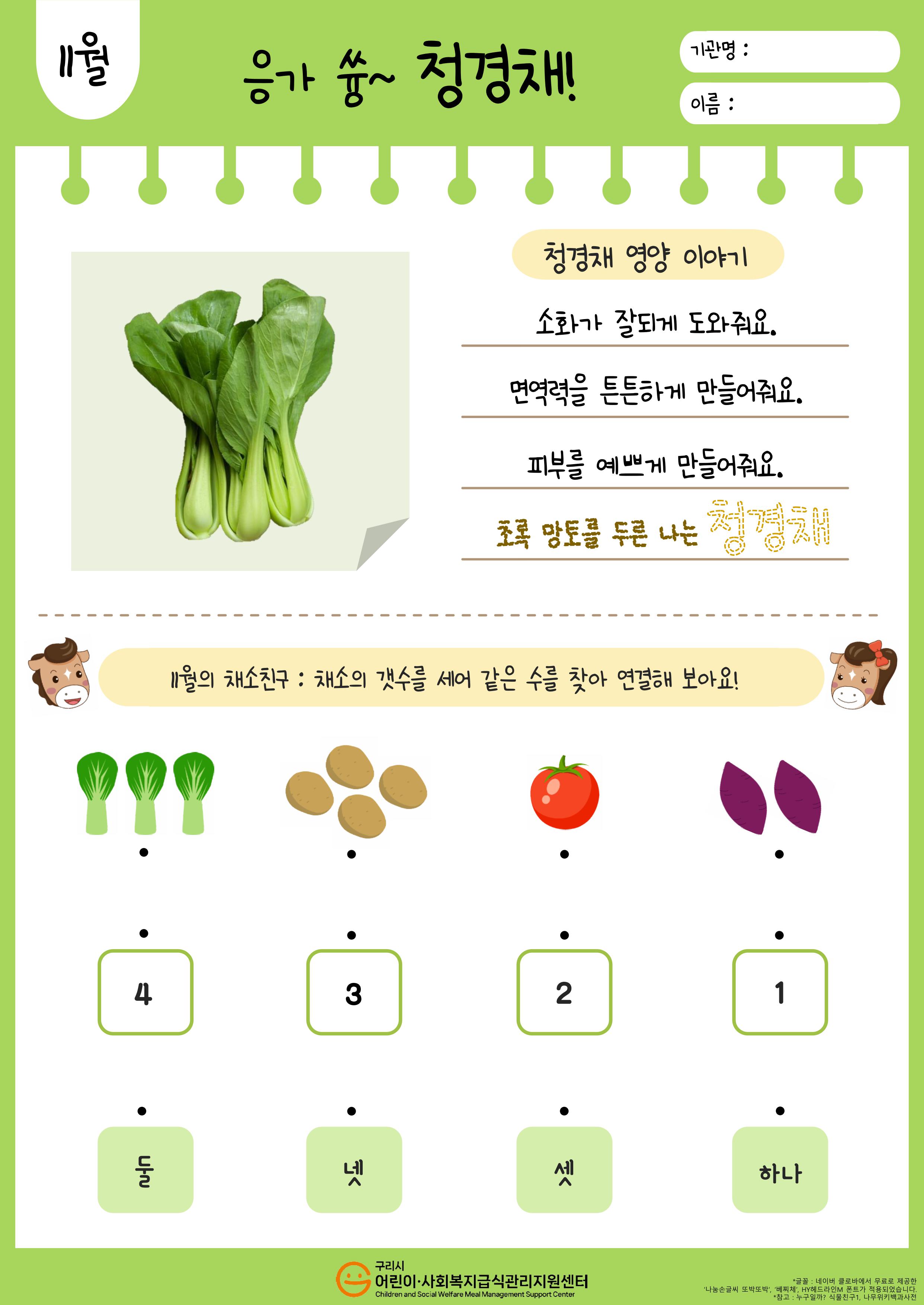 2025년 11월 푸드브릿지 활동지 '청경채'