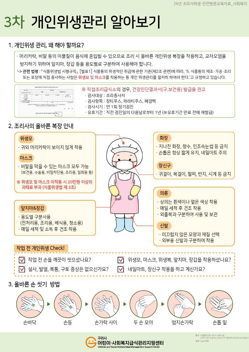 [어린이시설 조리사] 3차 개인위생관리 알아보기_위생·안전